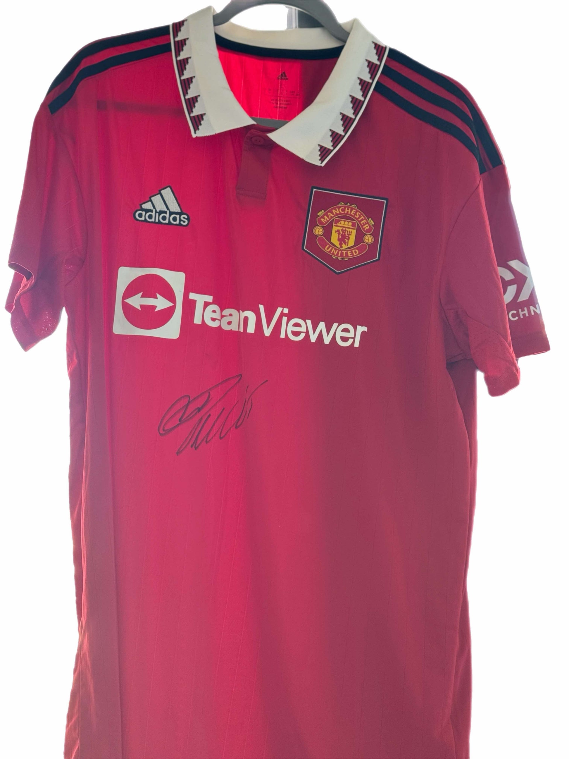This stunning 2022/23 home shirt features Ronaldo’s bold autograph on the front and comes with a Certificate of Authenticity issued directly by Manchester United Football Club. This certificate verifies the signature and includes a matching hologram for complete peace of mind.