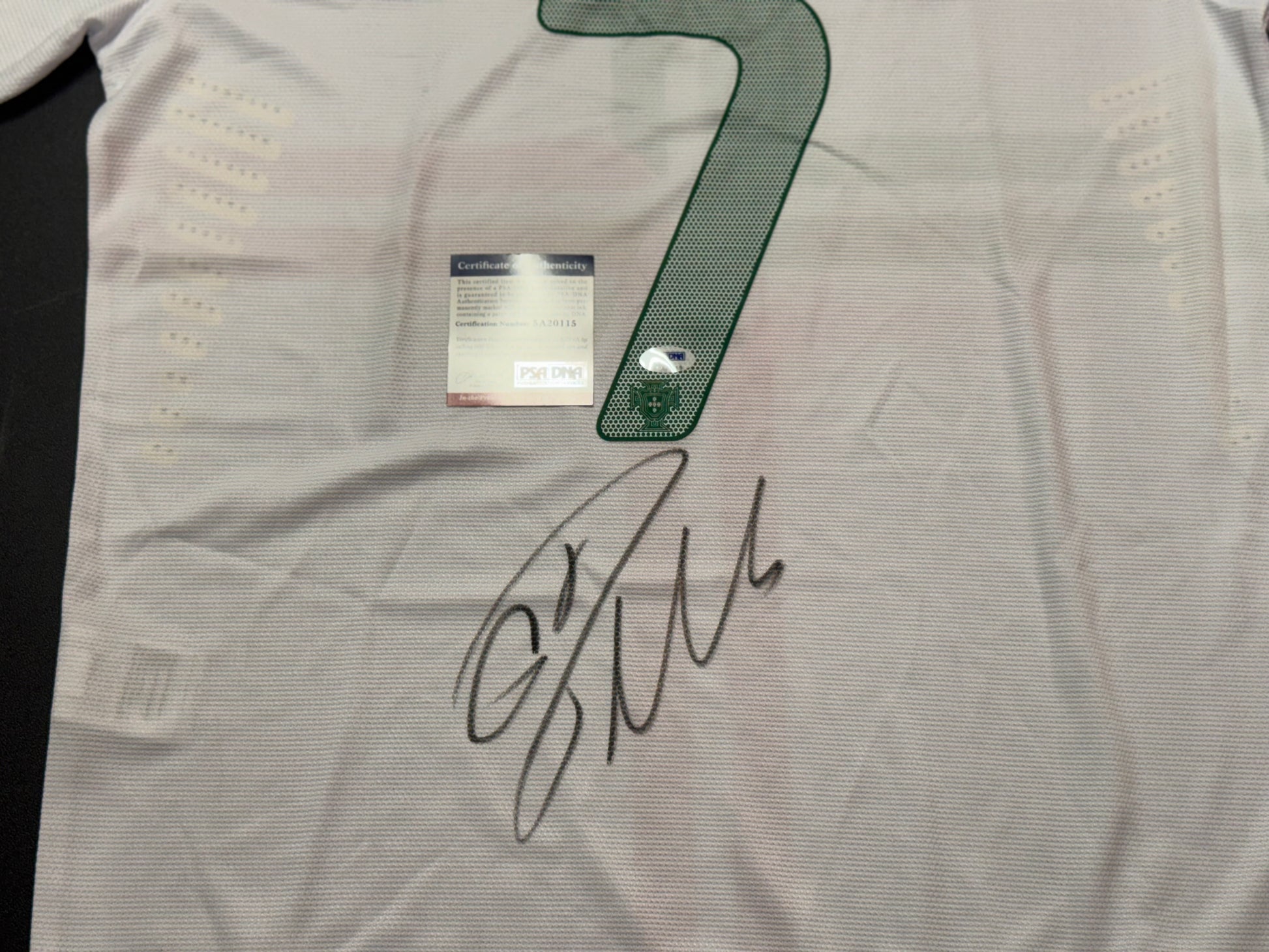 A must-have for any CR7 collector. This official Portugal National Team jersey features the iconic No. 7 and is personally signed by Cristiano Ronaldo, the greatest player in Portuguese football history. The signature has been witnessed and certified by PSA/DNA, one of the most respected names in sports authentication.